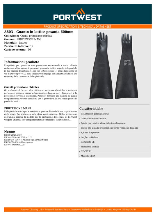 Guanto in lattice pesante cm. 60 cod. A803 Portwest