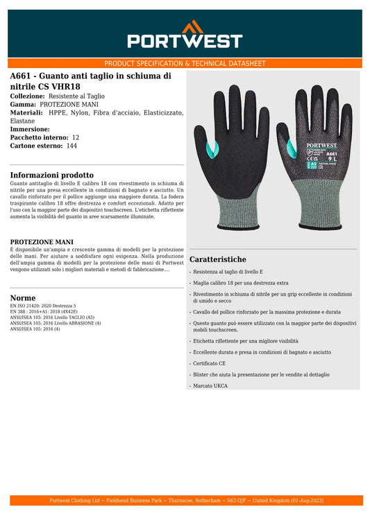 Guanto antitaglio 5 in schiuma di nitrile cod. A661 Portwest